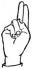На ћирилици написано МИЛИН МИЈАЈЛОВИЋ састоји се из 15 слова [?]. Исписано ћириличном једноручном азбуком за глувонеме: